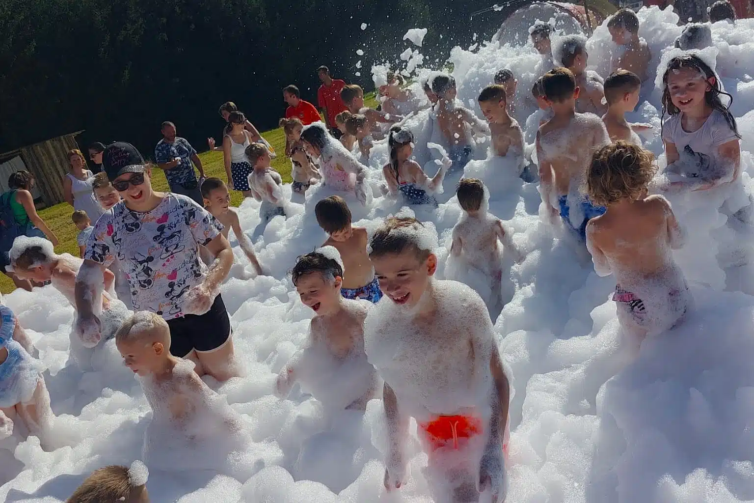 A nap fénypontja egy hatalmas habágyús buli lesz, ahol a gyerekek és felnőttek önfeledten játszhatnak a puha, szálló buborékok között.